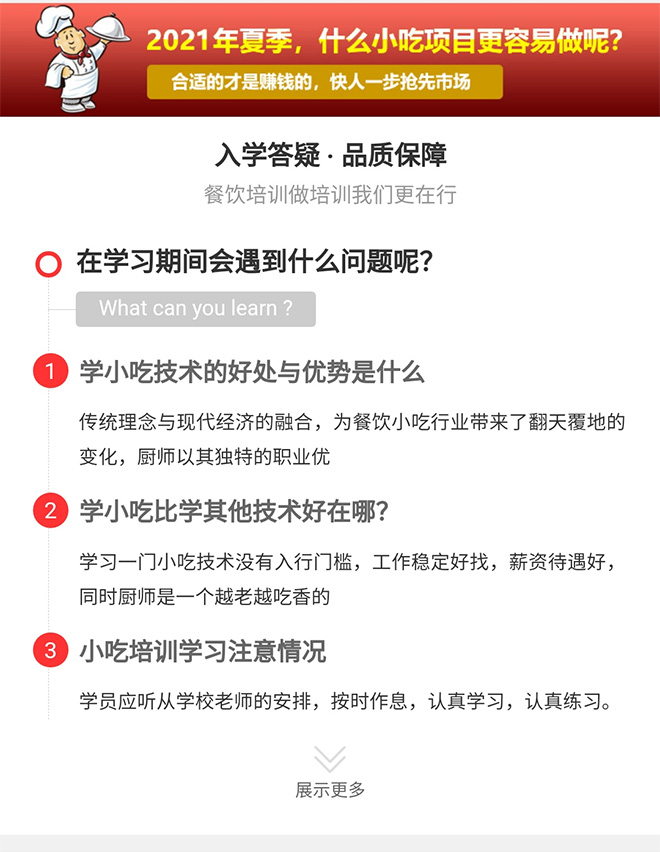 山東食客來餐飲管理小吃培訓(xùn)公司,是山東聊城專業(yè)的小吃培訓(xùn)機(jī)構(gòu),餐飲創(chuàng)業(yè)培訓(xùn)基地。經(jīng)過多年的沉淀,山東食客來餐飲管理小吃培訓(xùn)公司擁有了以研究和傳授技術(shù)配方為核心的教學(xué)團(tuán)隊(duì),為創(chuàng)業(yè)者提供專業(yè)、流行、經(jīng)典的培訓(xùn)項(xiàng)目,培訓(xùn)內(nèi)容涵蓋了特色小吃、面食餅類、特色快餐、主食早點(diǎn)、燒烤鹵菜系列等8大系列,共計(jì)100余種小吃培訓(xùn)課程。