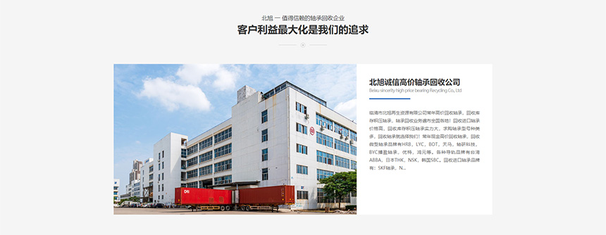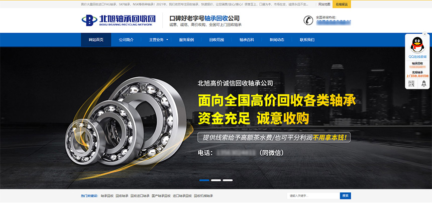 北旭軸承常年從事軸承回收再利用相關服務,近期因公司發(fā)展需要對企業(yè)官方網站進行升級改版